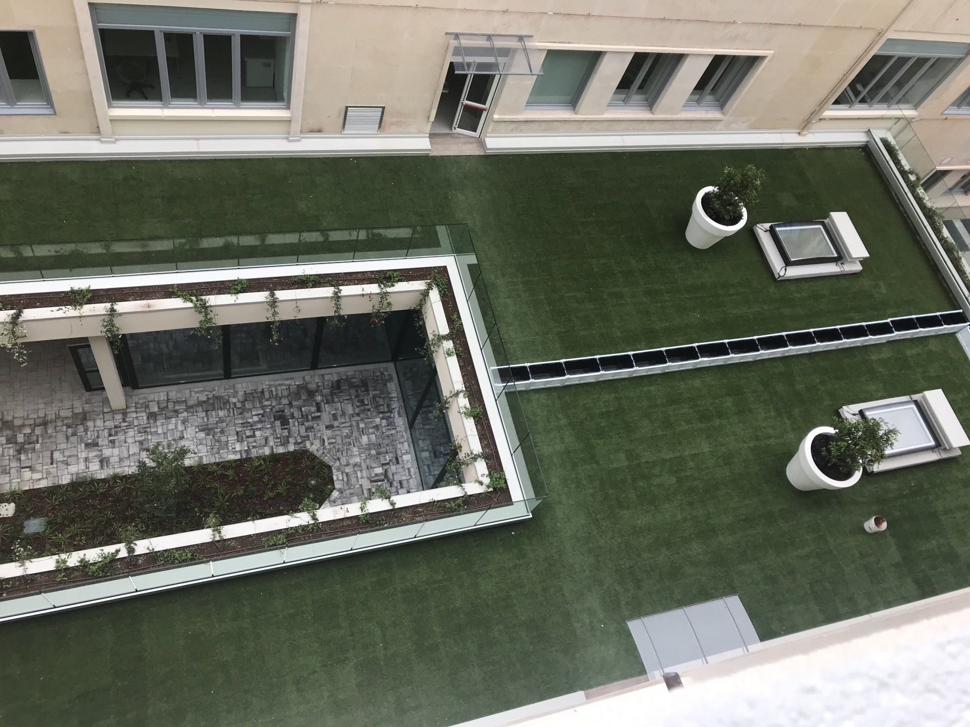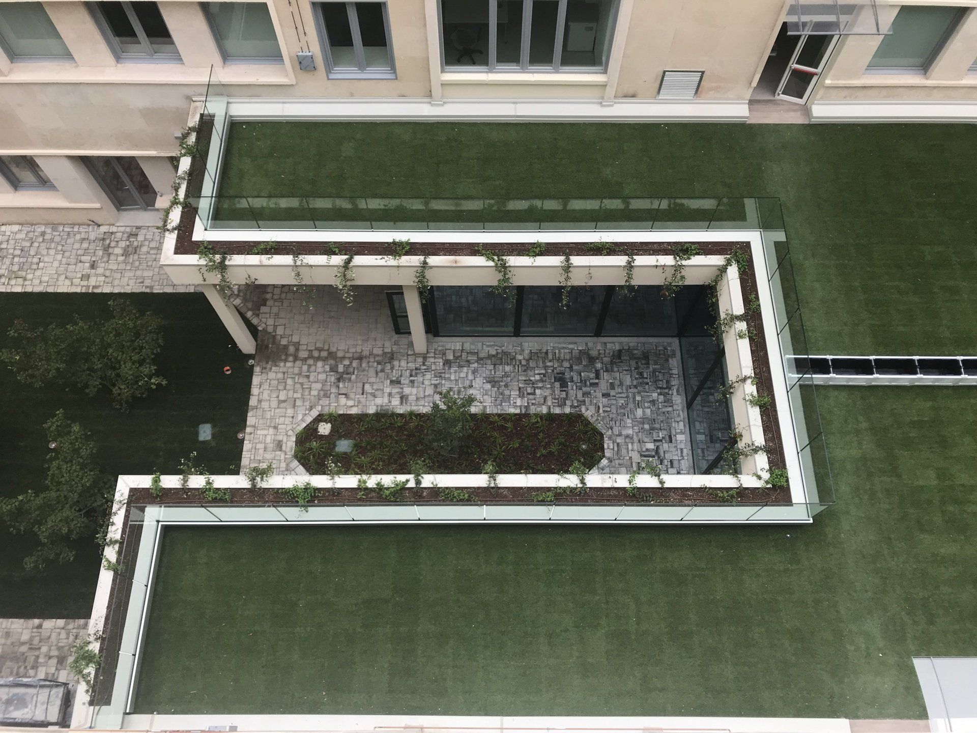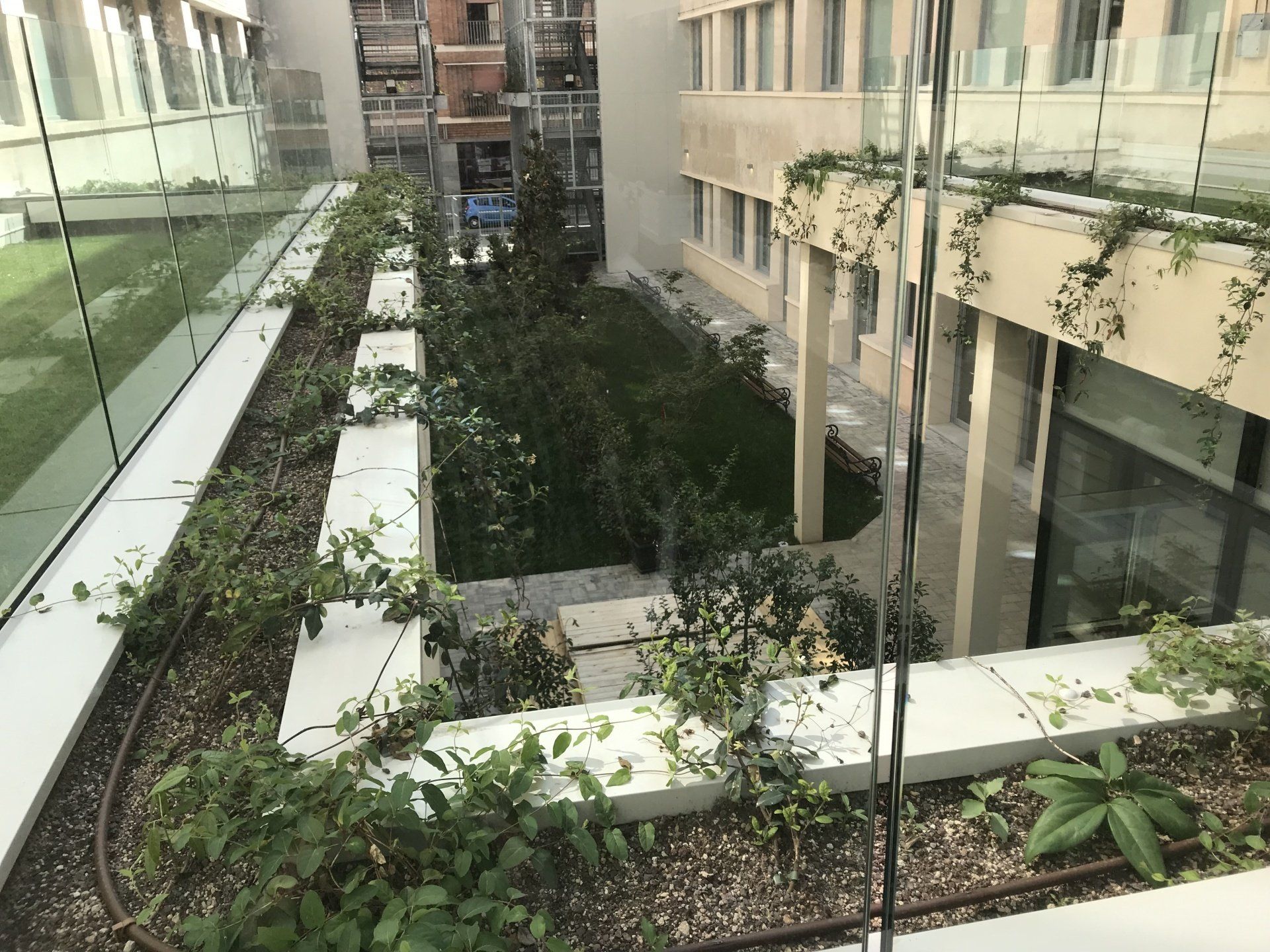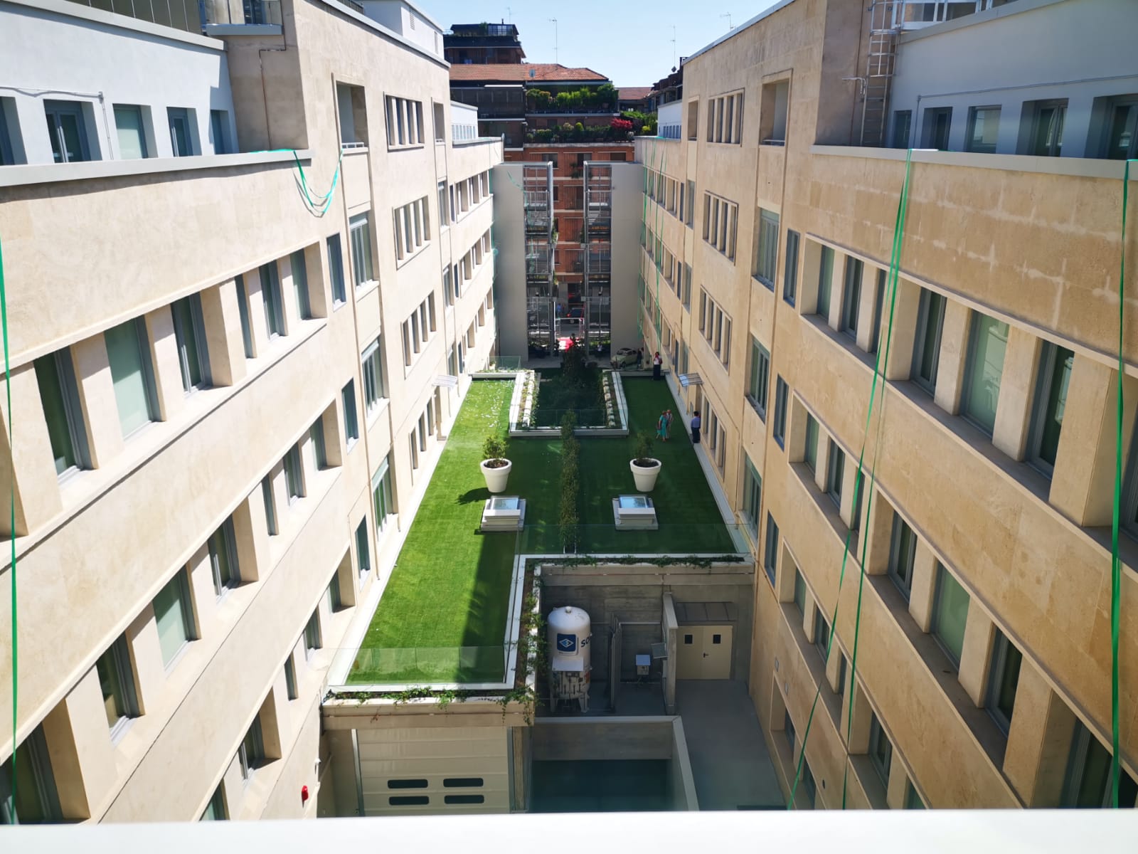 Anche all'esterno gli ospiti possono usufruire di un giardino privato, con spazi piacevoli da vivere durante il giorno, rallegrati da giardini pensili e verde verticale che decora le superfici della struttura.