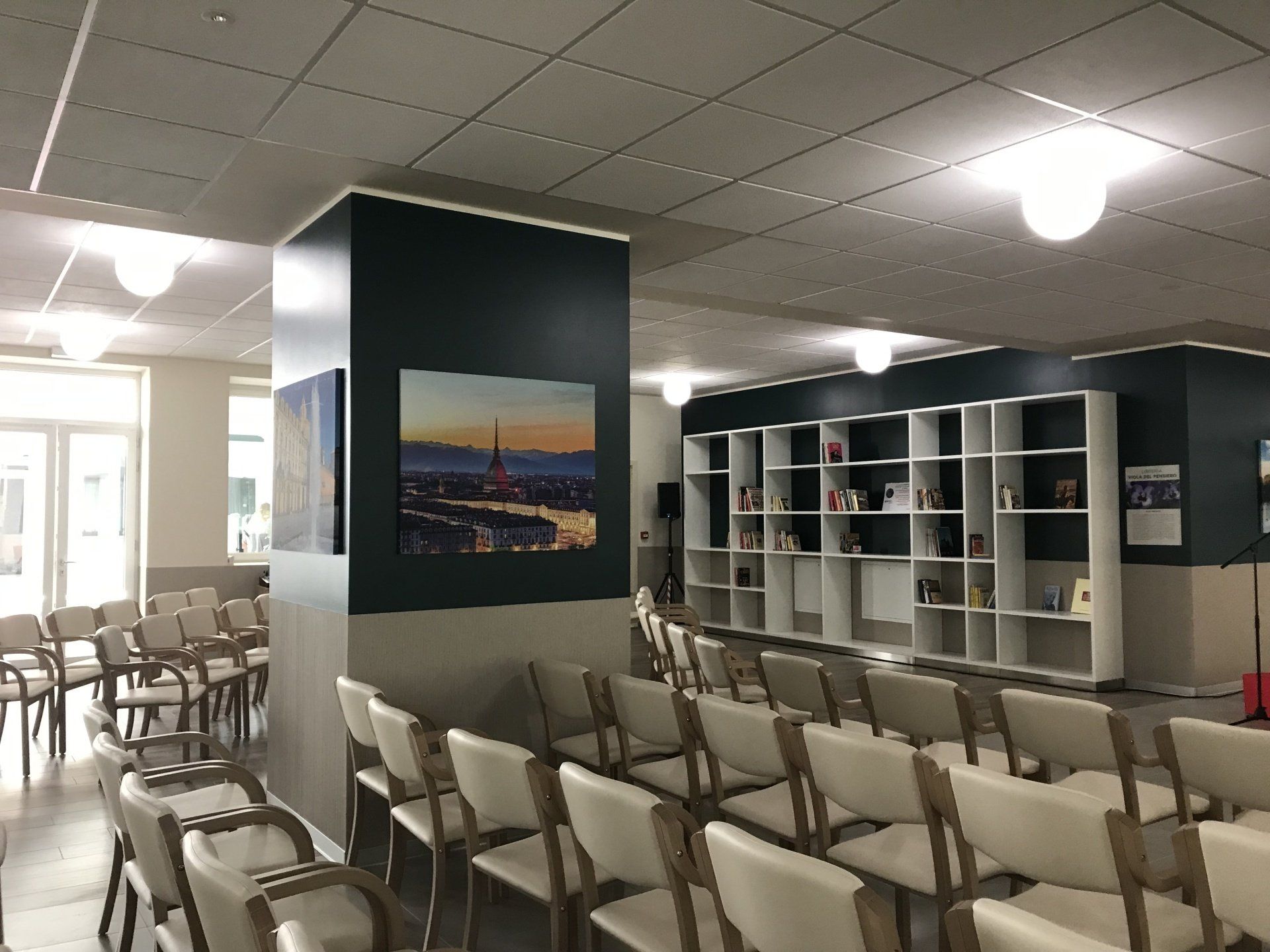 Dopo il taglio del nastro ad opera del Vice Sindaco, accompagnati dalla musica della band torinese ‘’Cinque/ottavi’’ e dalla recita di poesie dei bambini della Scuola Primaria Top School di Torino, i visitatori hanno avuto la possibilità di vistare gli spazi e gli ambienti delle RSA dove soggiorneranno gli ospiti, toccando con mano l’elevato standard tecnologico di tipo sanitario-riabilitativo ma anche servizi alberghieri di prima qualità, ammirare le soluzioni di verde verticale e il giardino pensile, una vera e propria “Galleria verde” nel cuore della città, e le tante immagini fotografiche, acquisite dal Centro Storico Fiat, che arredano le due strutture e sottolineano lo stretto legame con la città di Torino e la sua storia.